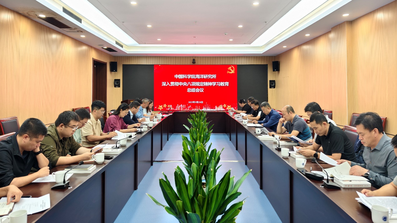 9月28日,中國(guó)科學(xué)院海洋研究所召開深入貫徹中央八項(xiàng)規(guī)定精神學(xué)習(xí)教育總結(jié)會(huì),傳達(dá)學(xué)習(xí)習(xí)近平總書記關(guān)于作風(fēng)建設(shè)的重要指示精神,學(xué)習(xí)中央黨的建設(shè)工作領(lǐng)導(dǎo)小組會(huì)議、中國(guó)科學(xué)院黨組深入貫徹中央八項(xiàng)規(guī)定精神學(xué)習(xí)教育總結(jié)會(huì)議精神,通報(bào)院學(xué)習(xí)教育工作專班關(guān)于問題整改成效的抽查評(píng)估結(jié)果,總結(jié)深入貫徹中央八項(xiàng)規(guī)定精神學(xué)習(xí)教育開展情況,研究部署推進(jìn)作風(fēng)建設(shè)常態(tài)化長(zhǎng)效化。